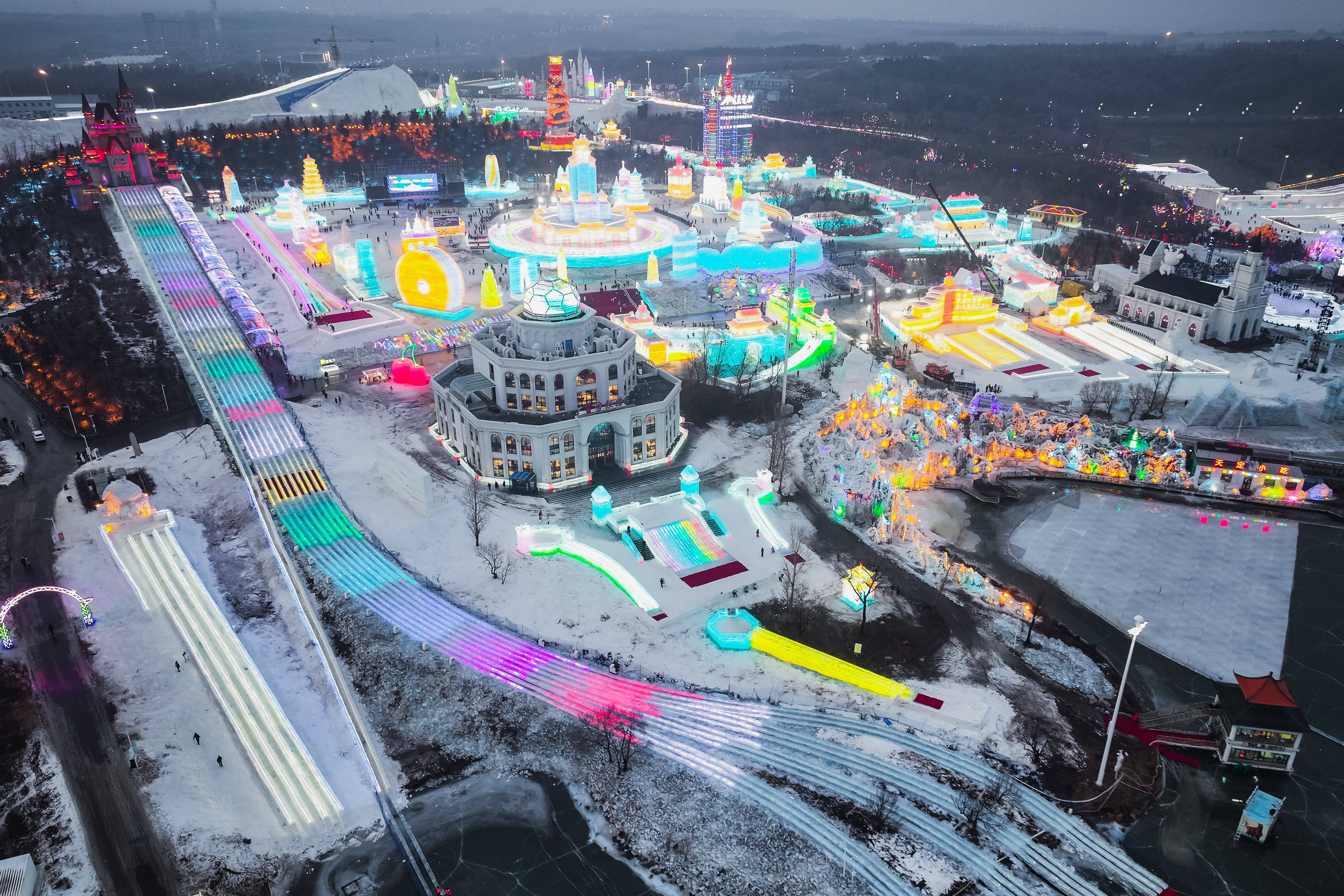 这是12月19日拍摄的长春市冰雪新天地景区(无人机照片)。新华社发(张扬 摄)冬至大如年