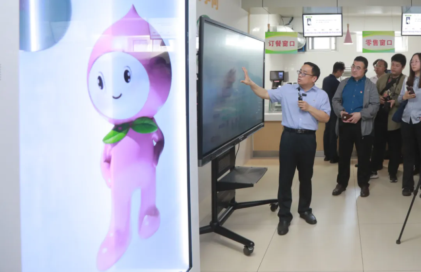 午餐时间,北京市育英学校初中学生吴昀轩走进食堂。点餐前,她先和屏幕上的“小桃桃”打个招呼,请“她”给自己提出营养分析和建议。