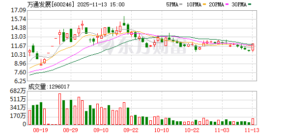 证券时报·数据宝统计显示,万通发展今日收盘价为11.97元,上涨10.02%,日换手率为6.86%,成交额为15.03亿元,全天主力资金净流入4.02亿元,近5日该股累计上涨0.50%,近5日资金合计净流入1.10亿元。